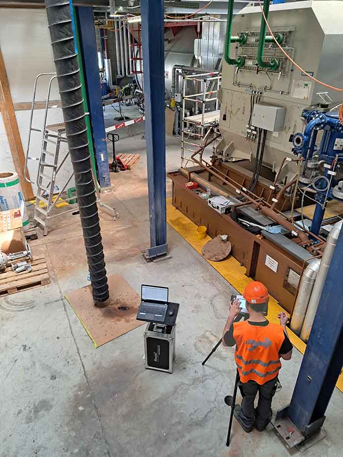 Flexijet ist ein mobiles und flexibles 3D-Aufmasssystem, das ideal für das Vermessen von Rundungen, Bögen, unregelmässigen Bauteilen und Kanten geeignet ist. Selbst an schwer zugänglichen Orten sind keine zusätzlichen Hilfsmittel wie Gerüste oder Leitern erforderlich.
